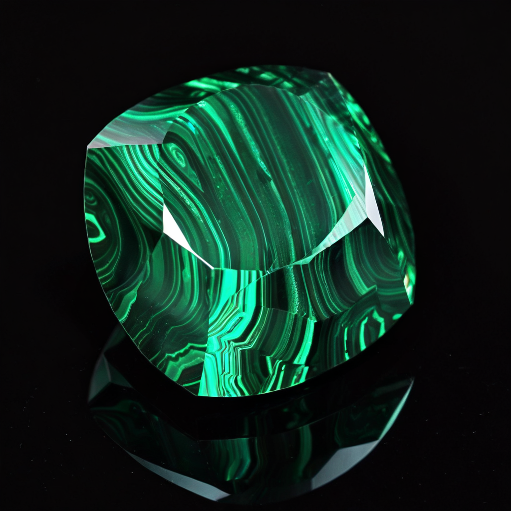 「深緑の渦巻く模様の中に、変容と保護の力が眠る、古代エジプトの聖なる石。」